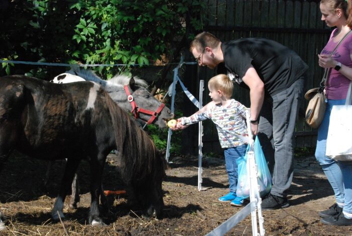 Wczoraj dopisała piękna pogoda i goście. Można było obejrzeć, pogłaskać i nakarmić wszystkie nasze zwierzaki. Wszystko byłoby dobrze, gdyby nie Sówka, która przeskoczyła drewniany płotek i znalazła się wśród odwiedzających.