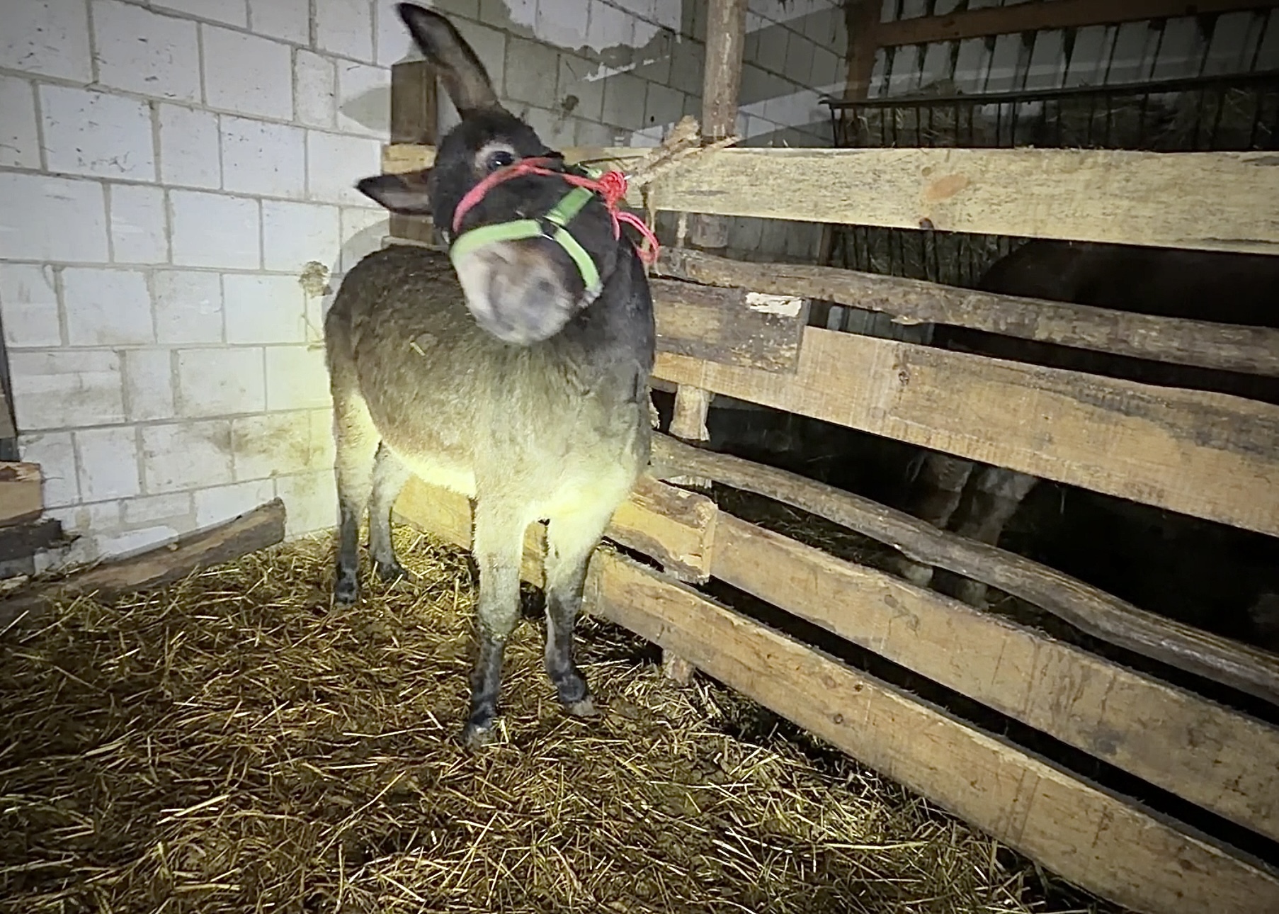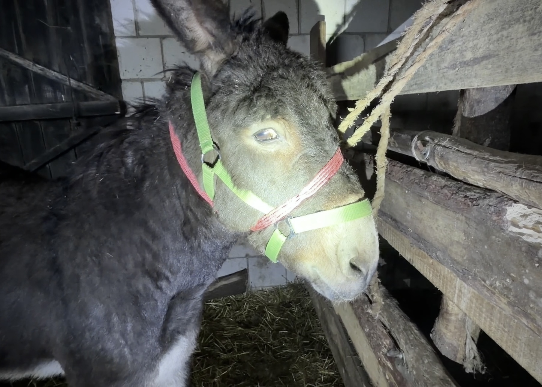 Uratowany przez Was osiołek Franio przyjechał już do naszego ośrodka w Nowym Wilkowie. Widać, że jest zestresowany. Dlatego chciałem przywieźć go od handlarza jak najszybciej, żeby mógł w końcu poczuć się bezpiecznie.