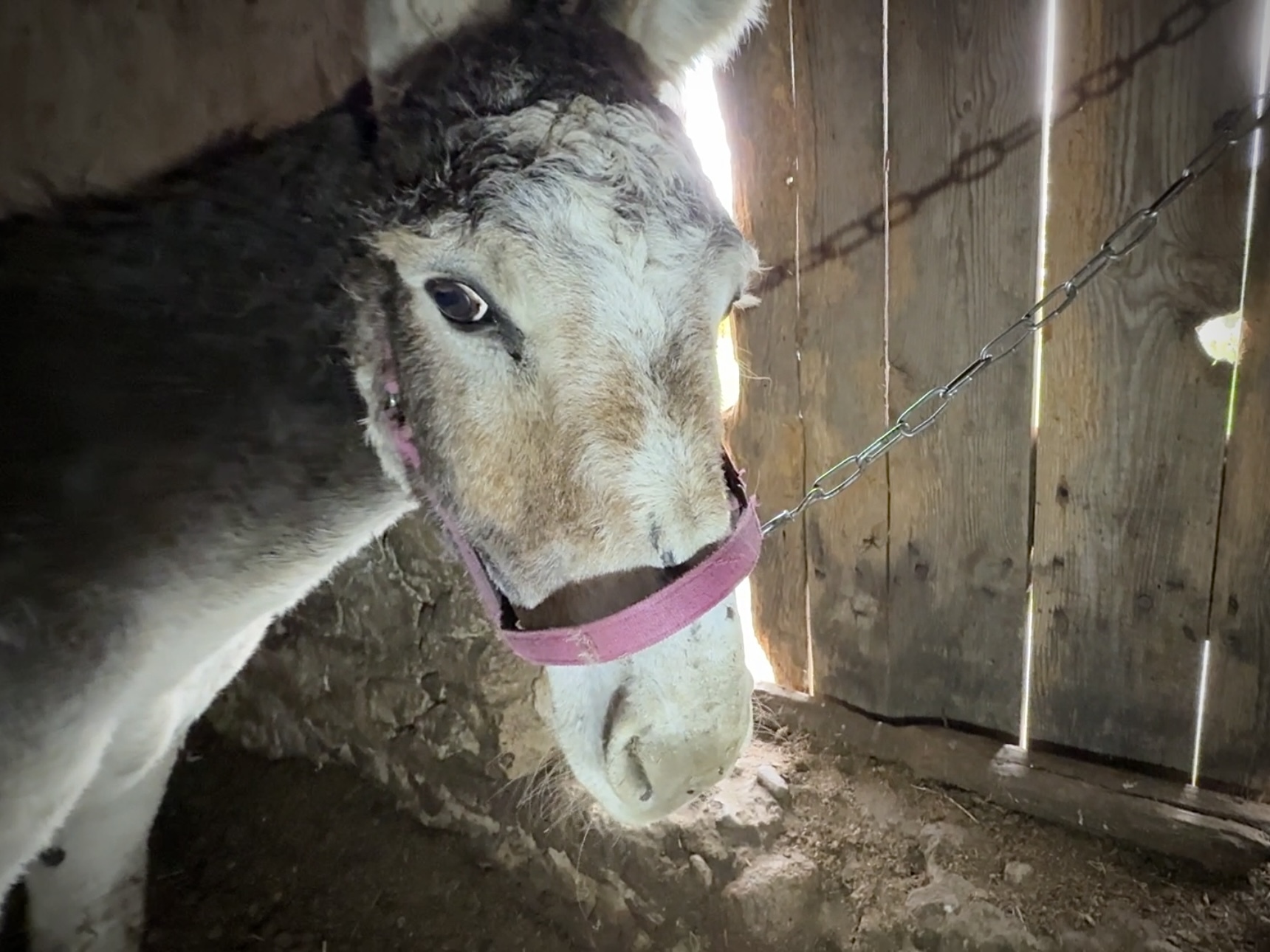 Ośliczka Mufka, którą uratowaliście kilka dni temu, jest już u nas. Na razie jest jej trochę trudno odnaleźć się u nas, ale to na pewno jest tylko kwestia czasu. Musi upewnić się, że u nas jest bezpieczna.